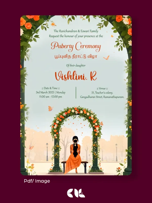 Puberty Ceremony / Half Saree Ceremony/ Manjal Neeratu Vizha Invitation