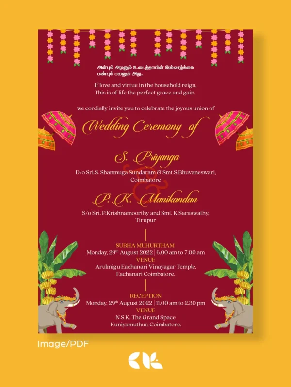 - Customize Details: Select your favorite design and fill in the necessary wedding details, such as names, date, venue, and any special instructions.